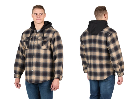 Introducing BERNE's Flannel Hooded Shirt Jacket, designed for work and
